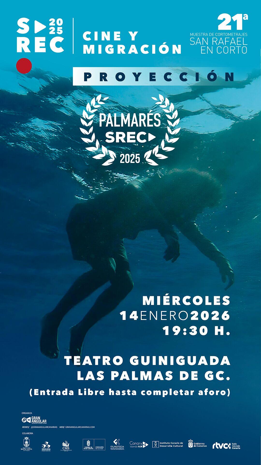 12/1/2026.- El Teatro Guiniguada de la capital grancanaria acoge el día 14 de enero, a las 19:30 horas, la proyección gratuita del palmarés oficial de la 21º edición de la Muestra de Cortometrajes San Rafael en Corto (SREC) que se desarrolló durante el pasado mes de noviembre en Santa Lucía de Tirajana, impulsada por la Asociación Cultural Gran Angular bajo el rótulo ‘Cine y Migración’.