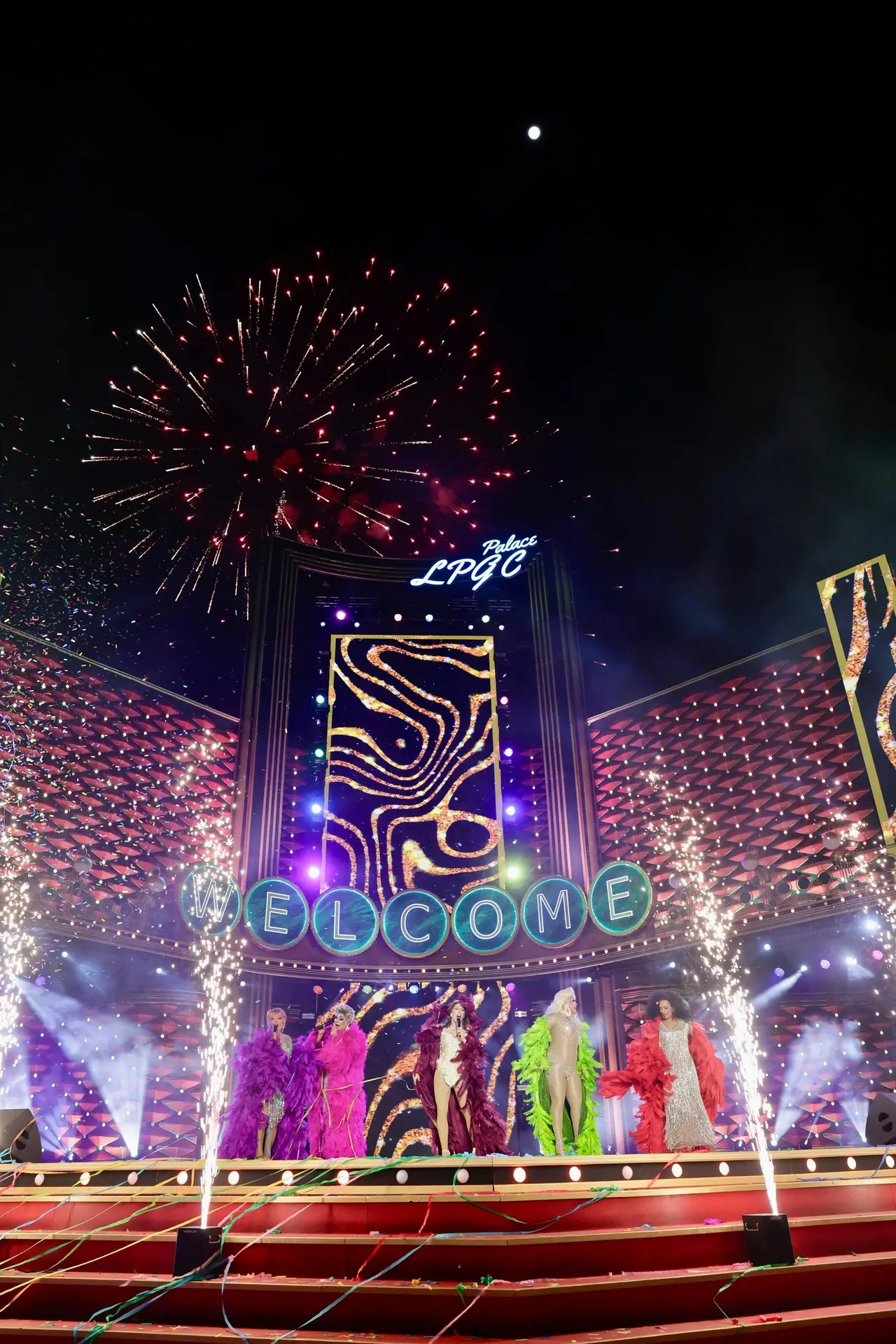 Bajo una enorme luna, a las 21:30 horas, los neones del hall del «Hotel LPGC Palace» del Carnaval de Las Palmas de Gran Canaria se encendían para recibir sobre el escenario de «Las Vegas» a las cinco protagonistas de una de las citas más atractivas y esperadas del programa carnavalero tras su exitoso estreno en la pasada edición: la Noche de transformistas.