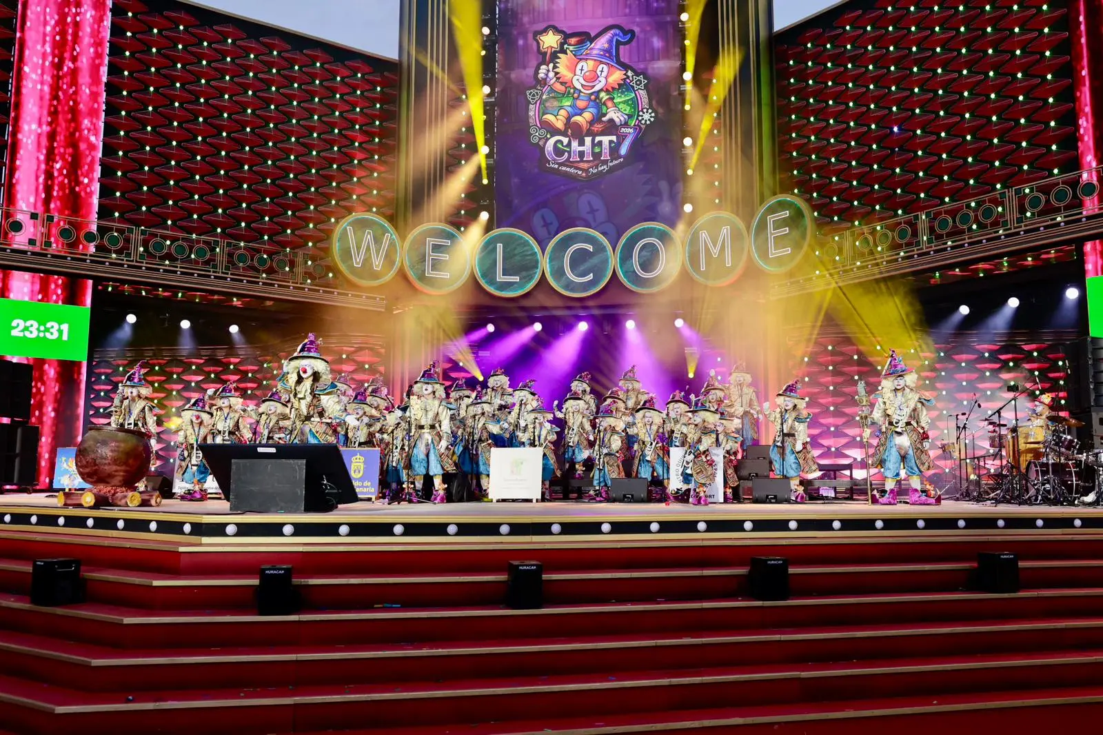 Los primeros en pisar el escenario fueron los 38 componentes de Los Chachitos que, con la fantasía «Con magia, ritmo y alegría, llegan los hechiceros a este Carnaval de fantasía», defendieron los temas «Dime a lo que juegas y te diré quién eres» y «Aunque no tenga mucha experiencia, ya que la vida es una competencia».